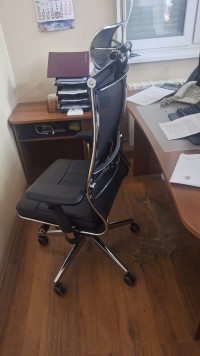 Покупали в кабинет директора. Выглядит очень презентабельно за счет обилия хрома и качественной кожи. Это не дешевый пластик, тут стальной каркас, что внушает доверие.